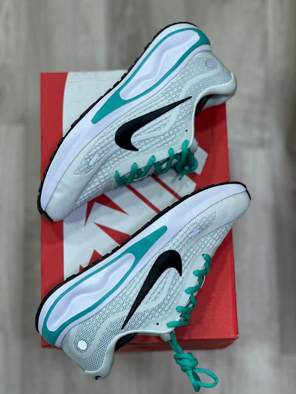 Chaussures de sport NIKE conçues pour la performance et le style. Dotées d'une construction légère et d'un amorti réactif, elles offrent un confort optimal lors de vos entraînements et activités quotidiennes. La combinaison blanc et vert turquoise crée un look moderne et dynamique. Semelle adhérente pour une meilleure stabilité et contrôle. Idéales pour les coureurs et athlètes en quête de fiabilité et d'élégance.